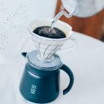 その後、円を描くようにゆっくりとお湯を注いでコーヒーが抽出されるのを待ちます。