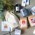 )。グッズとしてコーヒー豆・ドリップバッグに加え、マグカップやコーヒー染めシャツ・エプロン・トートバッグなどオリジナルグッズが用意されています。