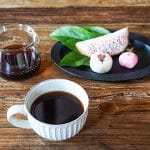 茶事のメインとなる濃茶は、フレンチプレスで抽出するコーヒーとして猿田彦珈琲と協力の元、選定したオリジナルブレンドのコーヒーを用意。主菓子の柑橘や桜など軽やかな味わいに合わせ、フルーティーな苺の香りを感じる豆を使用し、ほろ苦くなるように焙煎しています。発酵食材と合わせてコーヒーもアナエロビックというコーヒー豆を発酵させる手法を用いています。