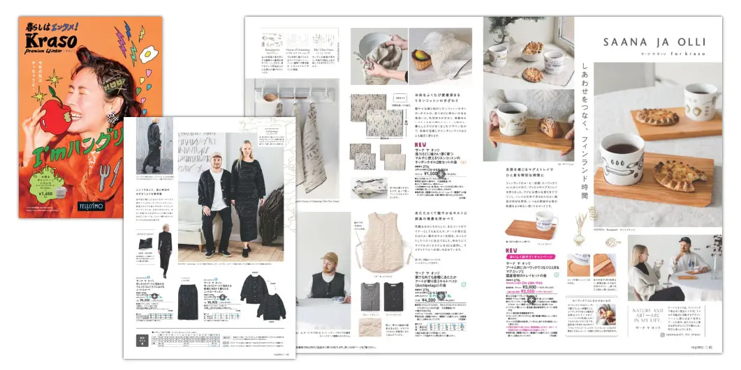 フェリシモが展開する、フィンランド南西部の自然豊かな町トゥルクを拠点とする若手デザインユニット「SAANA JA OLLI[サーナ ヤ オッリ]」のテキスタイルデザインを用いた雑貨ブランド「SAANA JA OLLI for kraso」は、新作を発表、12月下旬よりウェブ販売を行っています。新作は、豊かな実りをデザインした「マグカップと国産桜材のトレイセット」と、使うほどに味わいが深まる「マルチに使えるリネンコットンのキッチンタオル2枚セット」です。