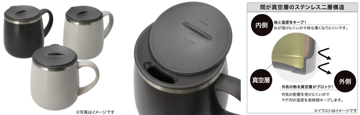 3WAY仕様のフタ付きステンレスマグもご紹介