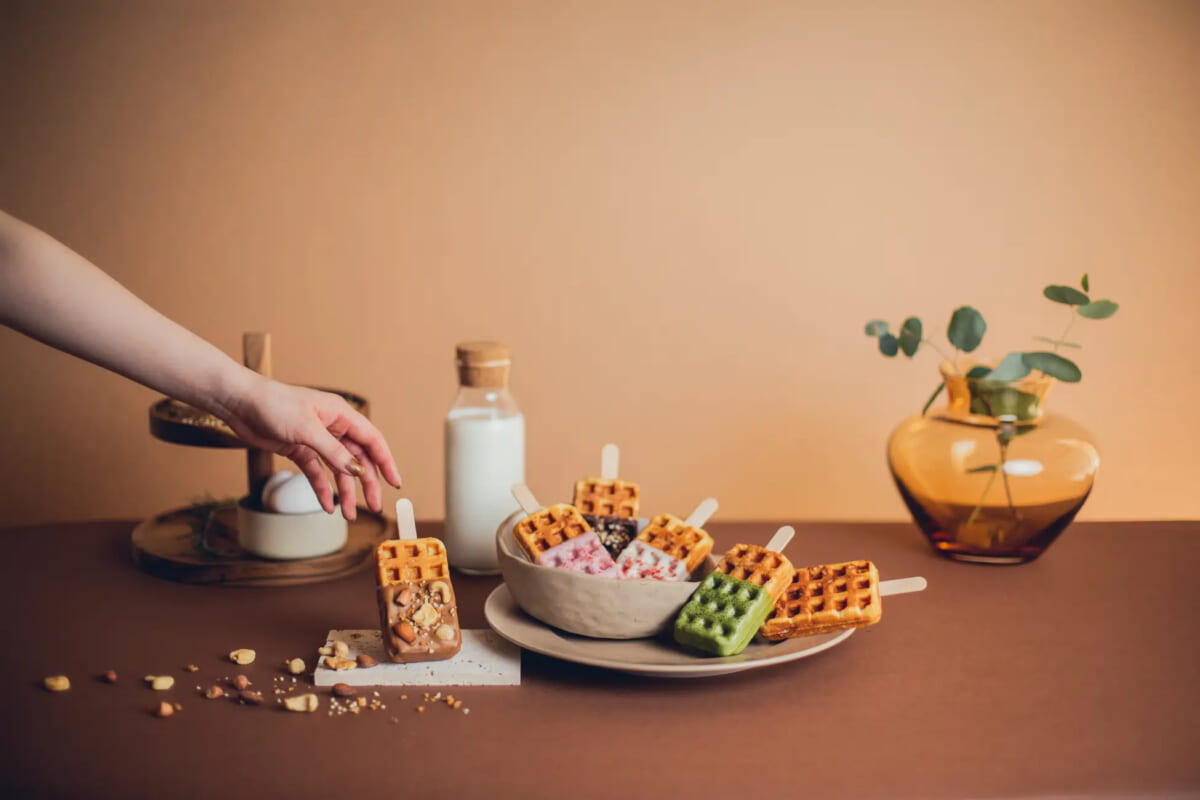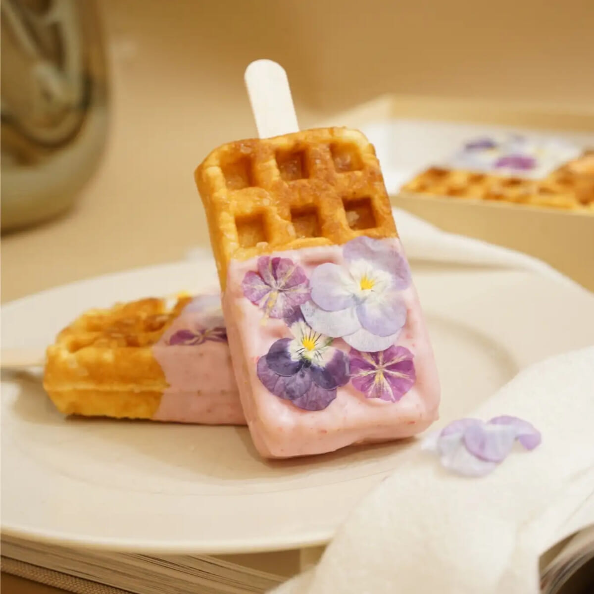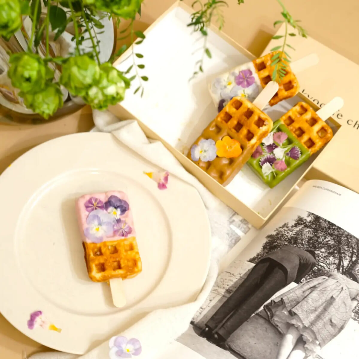 あざやかなカラーのワッフルは、お祝いの気持ちや愛を伝える場面におすすめです。