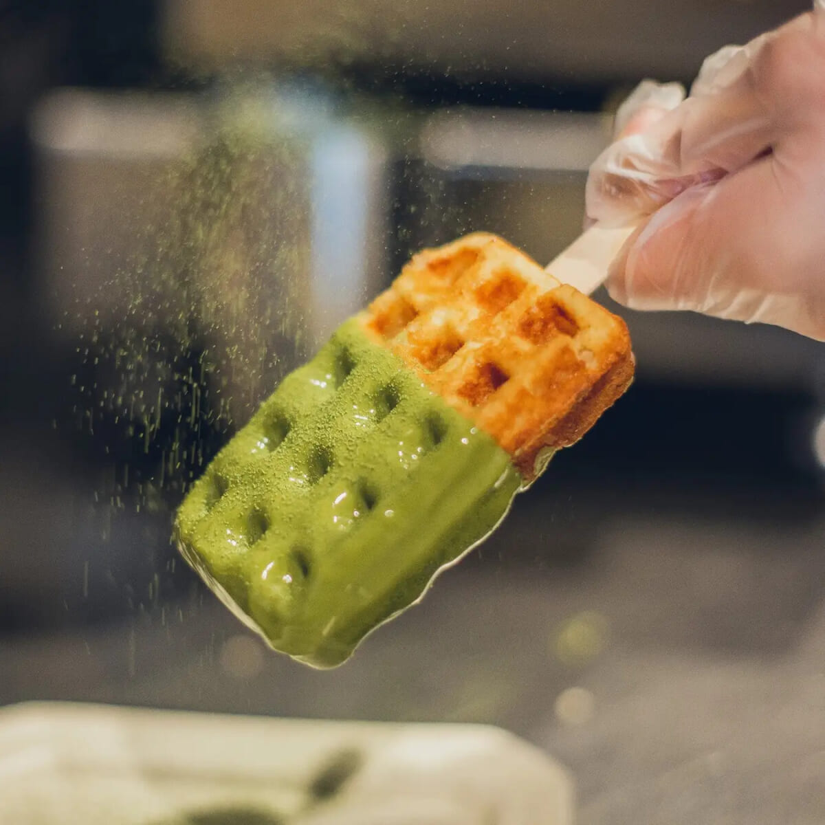 京ワッフルに合う抹茶粉を厳選し抹茶本来の香りとほろ苦さを存分に楽しんでいただけます