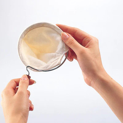 ネルフィルター繰り返し使用できるがとにかく汚れやすい。使用したらしっかりと洗うことが大きな課題だ。コーヒーのカスや油分が残っているとそれだけで残念な味わいになってしまう。水洗い後は水をはった容器に浸し、冷蔵庫に保存。とにかく手入れが重要なので愛着を持ってお世話してあげて欲しい。