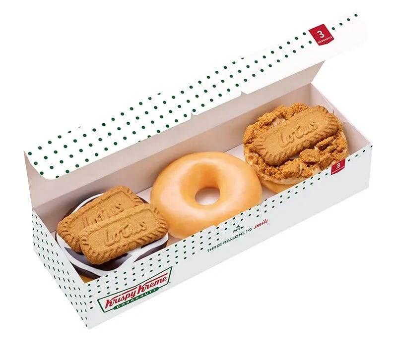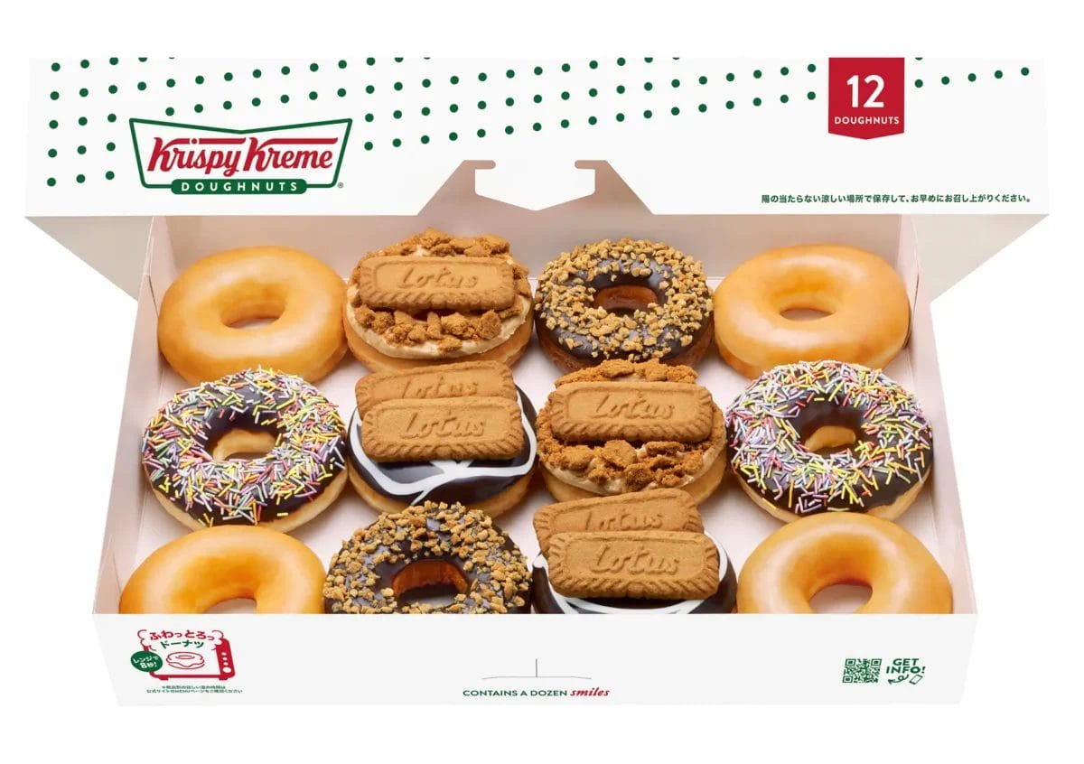 「ロータス ビスコフ」とクリスピー・クリーム・ドーナツが出会う、12個入り。