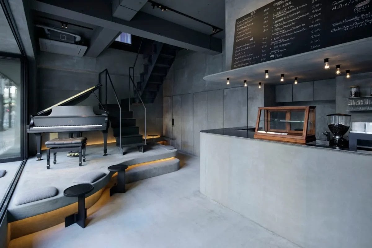 西麻布交差点から外苑西通りを広尾方面に進むと見えてくる黒いフレームのガラス張りのカフェが「Café Apéro」です。グレーを基調としたモノトーンの店内には世界最高峰のピアノメーカー、スタインウェイ&サンズの1941年製のグランドピアノS155が置かれ、週末にはライブでピアノ演奏もお楽しみいただけます。