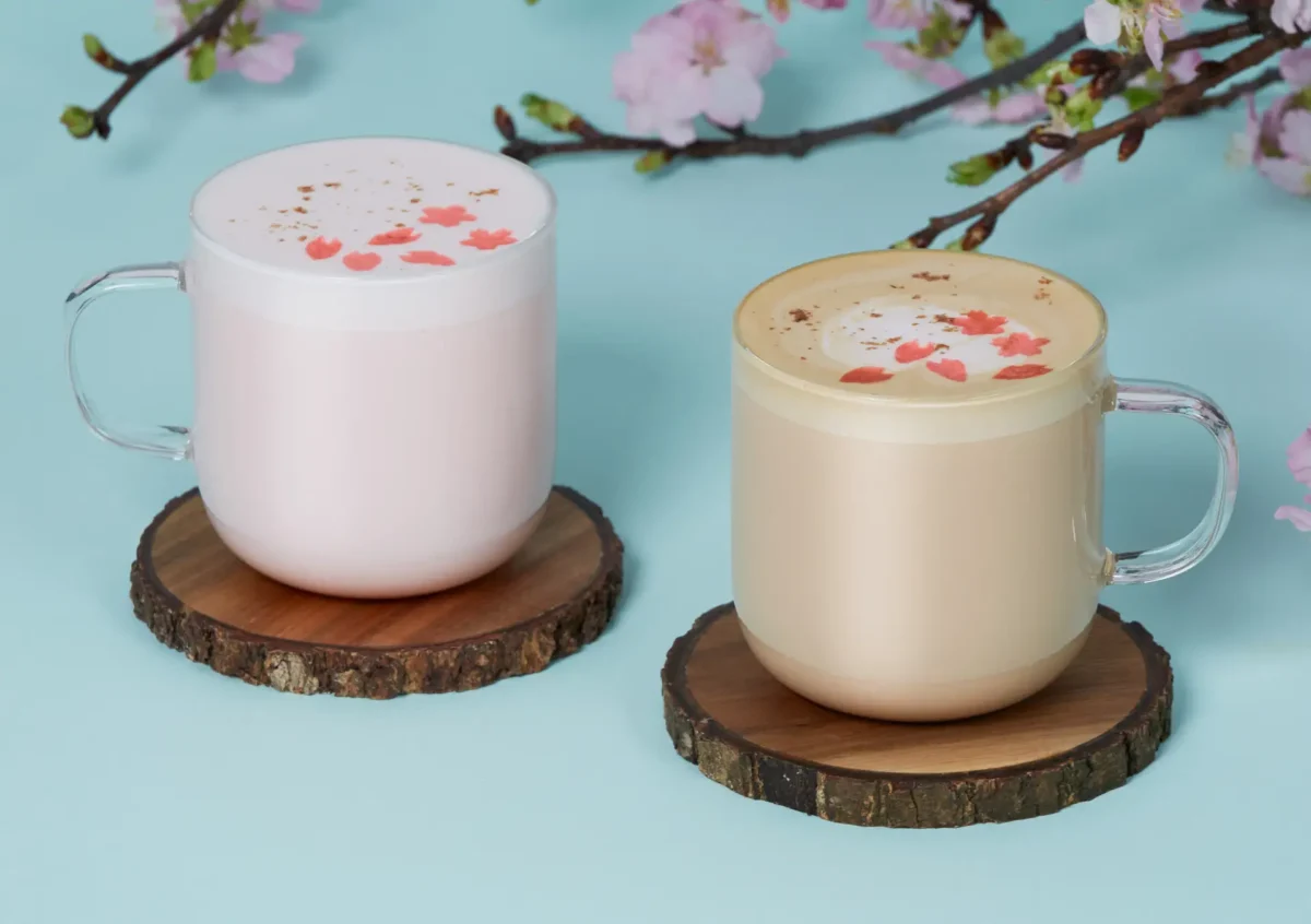 上に乗っている桜の花びらはソイシートから模ったもので、まるでひらひらとカップに舞い落ちたよう。この時期のムードにぴったりな一杯となっています。