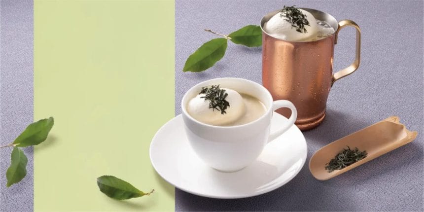 年に一度の新茶の時期に採れる初摘みの宇治玉露と、上島珈琲店自慢の「ミルク珈琲」の相性が抜群のシーズンドリンクです。使用する宇治玉露は、日光を遮って栽培する被覆栽培で、じっくりと茶葉を熟成させているため、さわやかで強い甘味を感じる茶葉が特長です。トッピングのホイップクリームと、玉露の茶葉を一緒に食べていただくと、口いっぱいに宇治玉露の本格的で大人な味わいと、芳醇な香りが広がります。