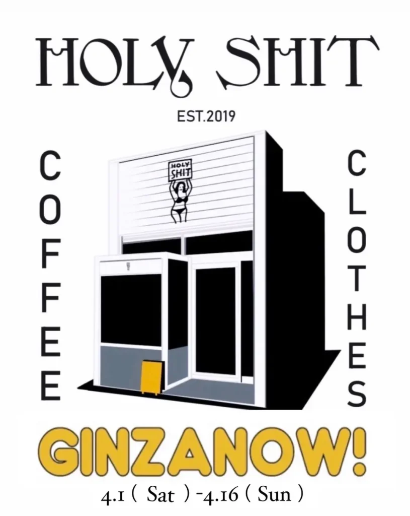 軒茶屋にあるカフェ「HOLY SHIT」。人気のドリンクメニュー(コーヒー、チャイラテなど)とTシャツ他オリジナルアパレルを販売します。銀座ロフト先行で販売するアイテムも。