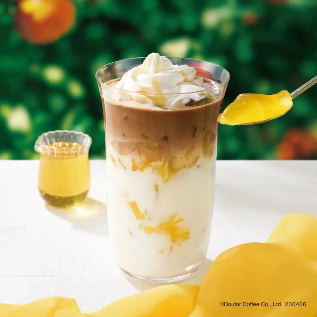 アイスの「みかんハニーラテ」に、愛媛県産みかん果汁を使ったゼリーをプラスしたデザートドリンクです。