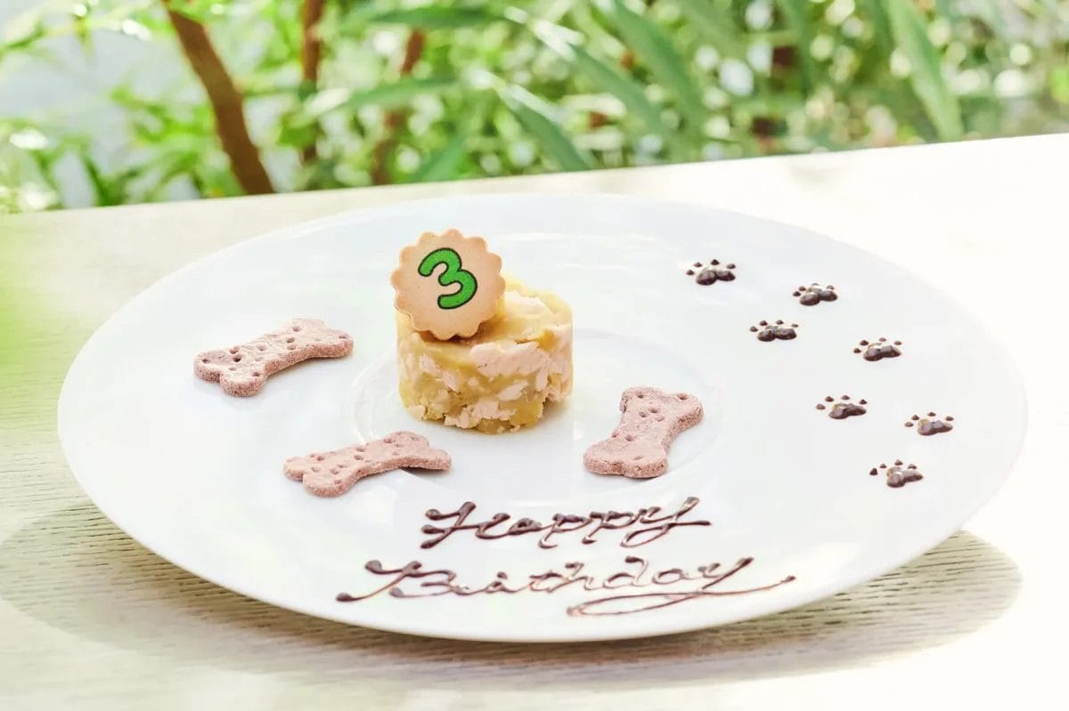 そのほかオプションとして、調味料、添加物不使用の愛犬用のおやつに加え、愛犬用のバースデープレートもご用意しておりますので、愛犬と一緒にお食事をお楽しみいただけます。(※おやつは当日オーダー可。バースデープレートは2日前までの要予約)