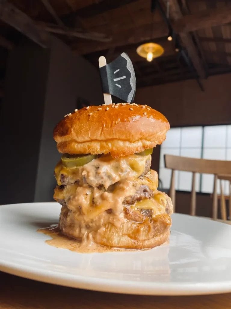 昨年の1周年の際に販売した足柄牛ビーフパティ2枚合計250gのボリュームのザ・MASAKARI BURGERをバージョンアップいたしました。2周年に期間限定で新登場の「Burning!!Masakari Super Bros.」は、足柄牛ビーフパティ3枚合計375gのボリュームとしています。スマッシュされたパティを3段重ねハラペーニョを忍ばせることで、粗びきの食感にピリッと辛さを感じられ、暑くなる季節に向けて冷たいドリンクと一緒に大人が楽しめる事を目的に開発いたしました。(価格は税込み2,600円)