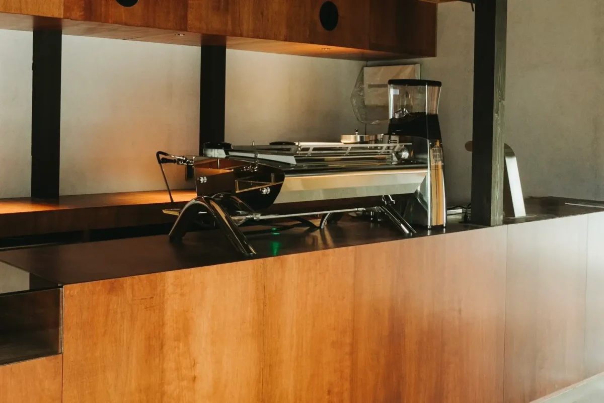 エントランスで出迎えるのは、オランダに本社がある「Kees van der Westen(キース・ファン・デル・ウェステン)」のエスプレッソマシン。メニューはエスプレッソを使用したドリンクに加え、「球磨川アーティザンズ」のコーディアルシロップを使用したクラフトコーラや、旬の果実を使ったシーズナルドリンク、ドリンクとのペアリングを楽しめる和菓子などを予定しています。また、店内で自家焙煎も行い、シングルオリジンや同店オリジナルブレンドの珈琲豆を提供します。