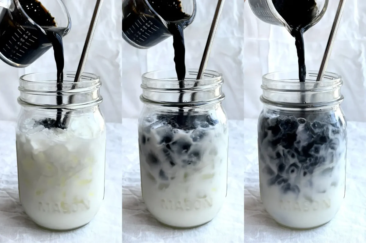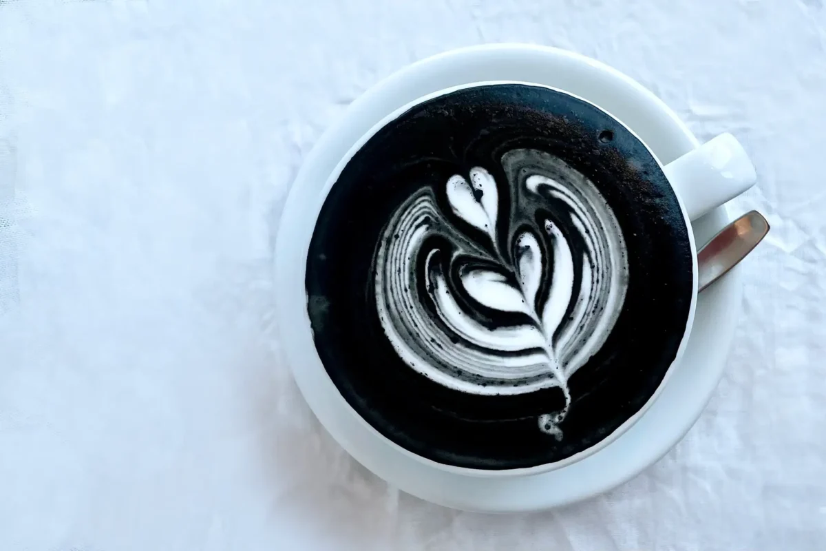 通常のラテに竹炭パウダーを加えた『チャコールラテ』は真っ黒な見た目ですが、竹炭は無味無臭の為エスプレッソの風味はそのままにラテを楽しんでいただけるお味です。奇抜な見た目の写真も撮ってお楽しみいただけます。