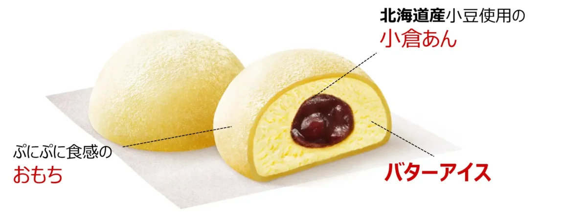 - 小倉あんにこだわり、北海道産小豆を使用した小倉あんをバターアイスとやわらかいおもちで包み込んだ雪見だいふくです。