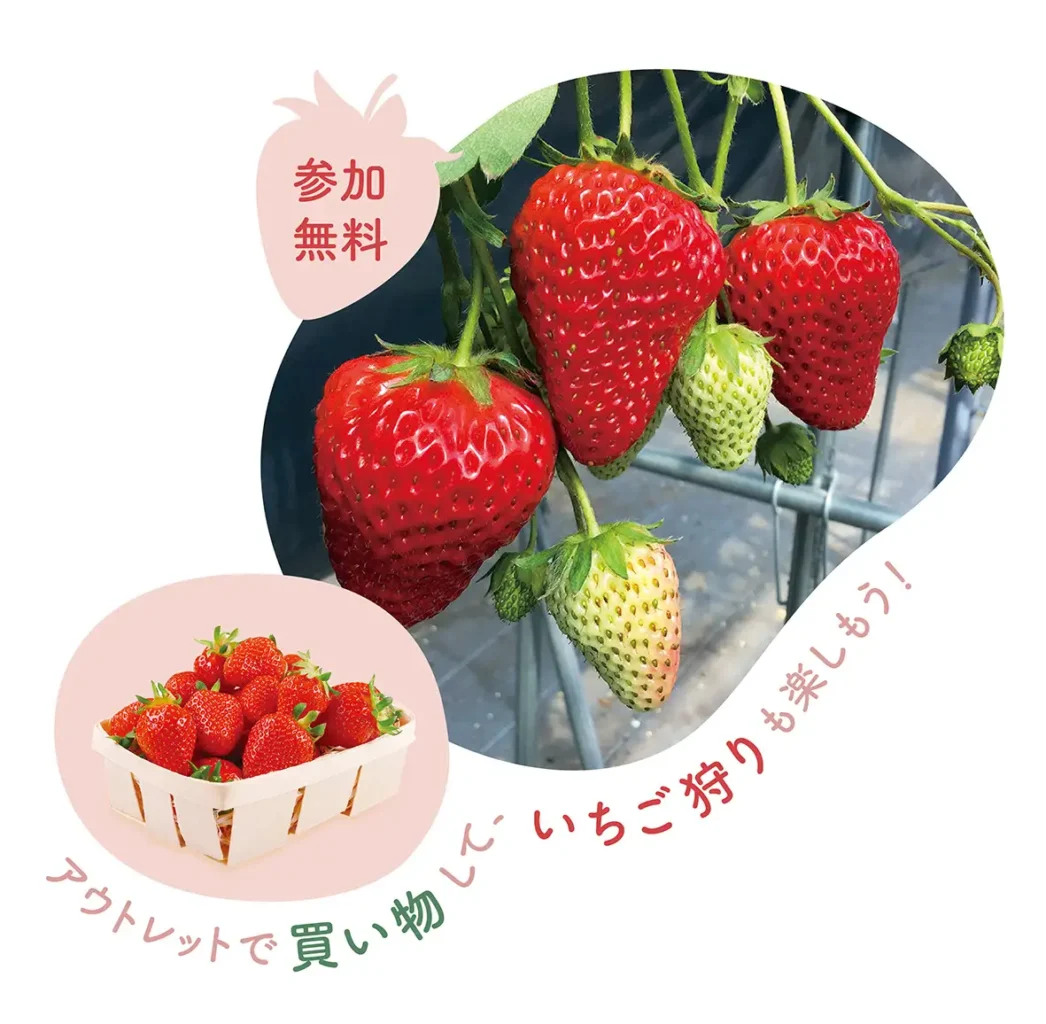 アウトレットで買い物して、いちご狩りも楽しもう!