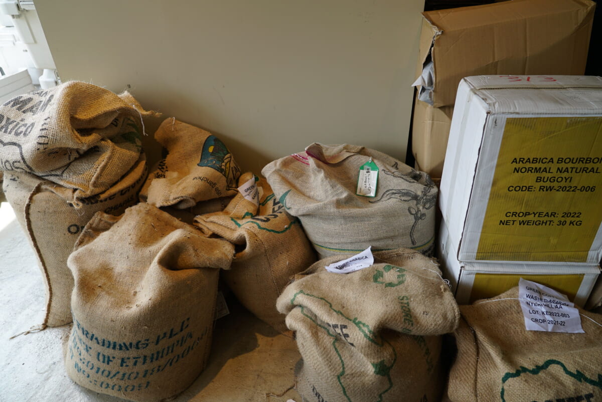店内に焙煎所が併設されており、豆の香ばしい香りが堪能できます。コンクリート調の店内の奥を覗けばロードバイクがずらりと並び、さらにその奥には真っ白に輝くお砂場がありました!