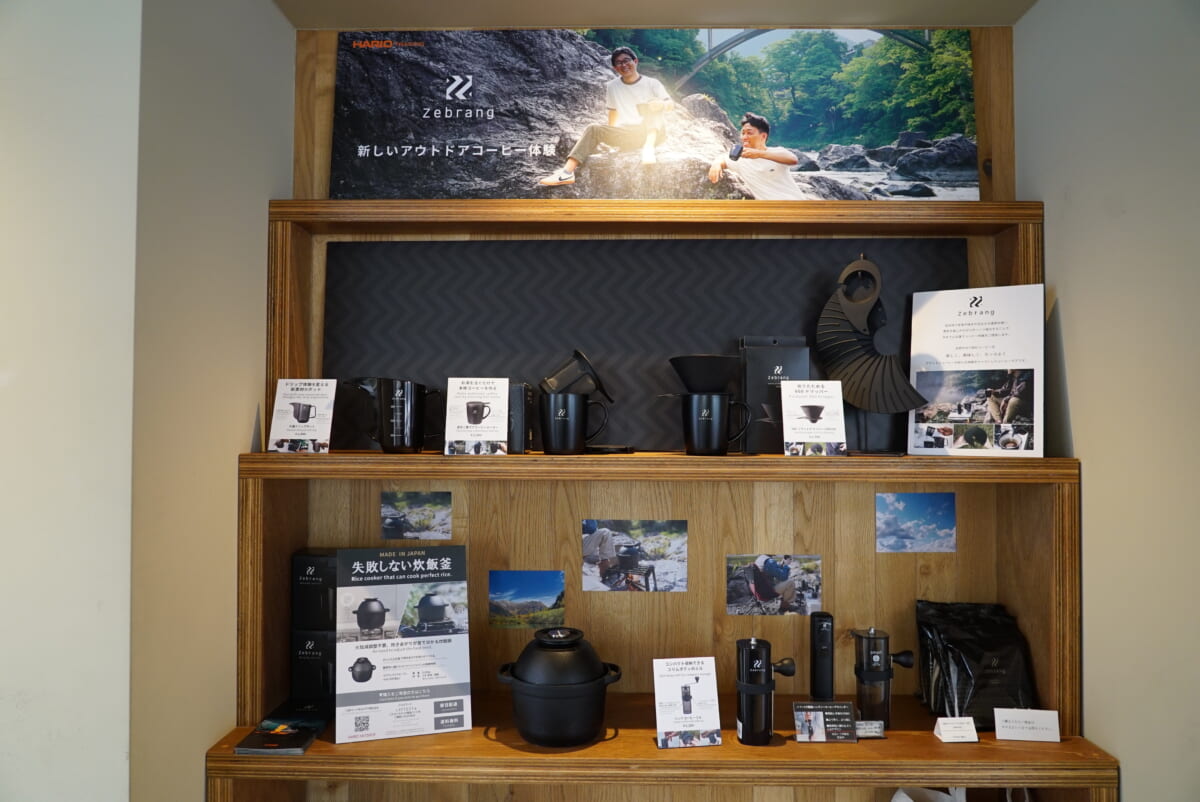 おとなりのショップ「shake tree DINER」側の入り口から入ってすぐにZebrangの棚があります。実店舗でゼブランライスオーブンを置いているのはLATTESTだけなんだとか!最新のギアを目で見て実際に触って、アウトドアシーンで使っている姿を想像しながらLATTESTのコーヒーを楽しめますね!