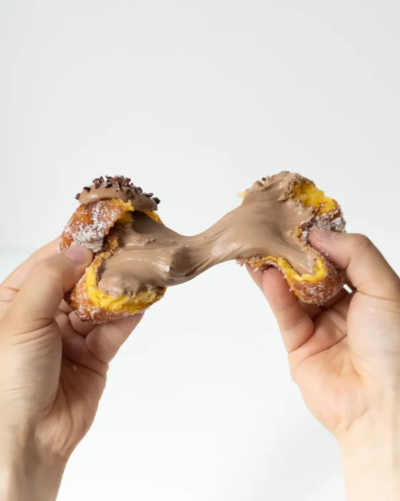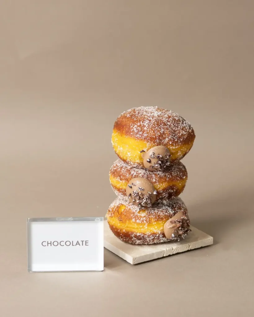 甘すぎずビターな味わいの濃厚チョコレートクリームを入れた生ドーナツです