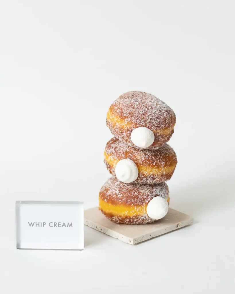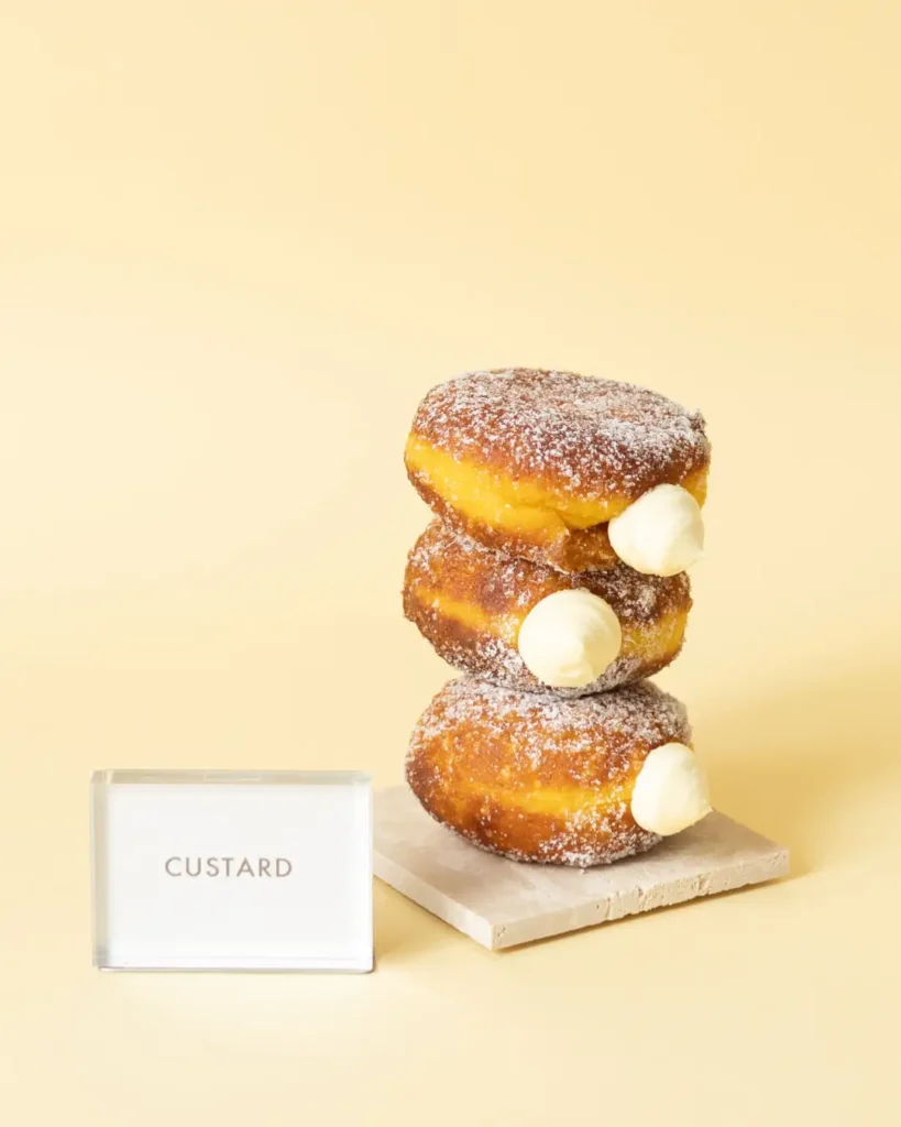 カスタードと生クリームを合わせた軽やかな口溶けのカスタードホイップを入れた生ドーナツです