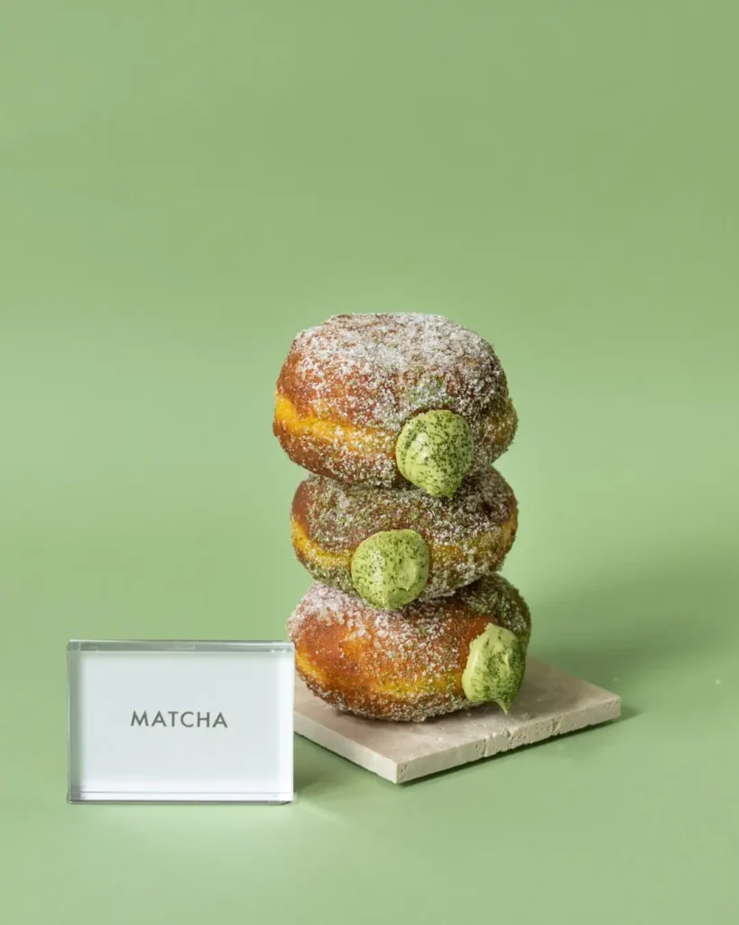 深いお茶の香りを楽しめる濃厚な抹茶クリームを入れた生ドーナツです