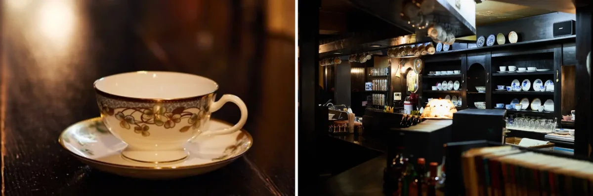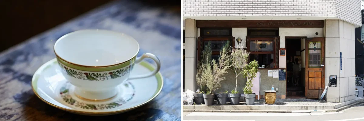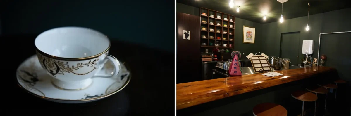 瓔珞文(ようらくもん)のカップ&ソーサーが、大正時代の建物をリノベーションした喫茶店「珈琲舞姫(コーヒーマキ)」を訪ねます。若き女性焙煎士が営むレトロモダンな空間と、クラシックな食器のマリアージュをお楽しみください。