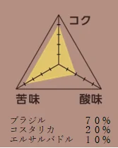 ブラジルのバタートーストのような芳ばしい香りとミルクキャラメルのような優しい甘さを活かして、苦味と甘さが調和したブレンドコーヒーに仕上げました。