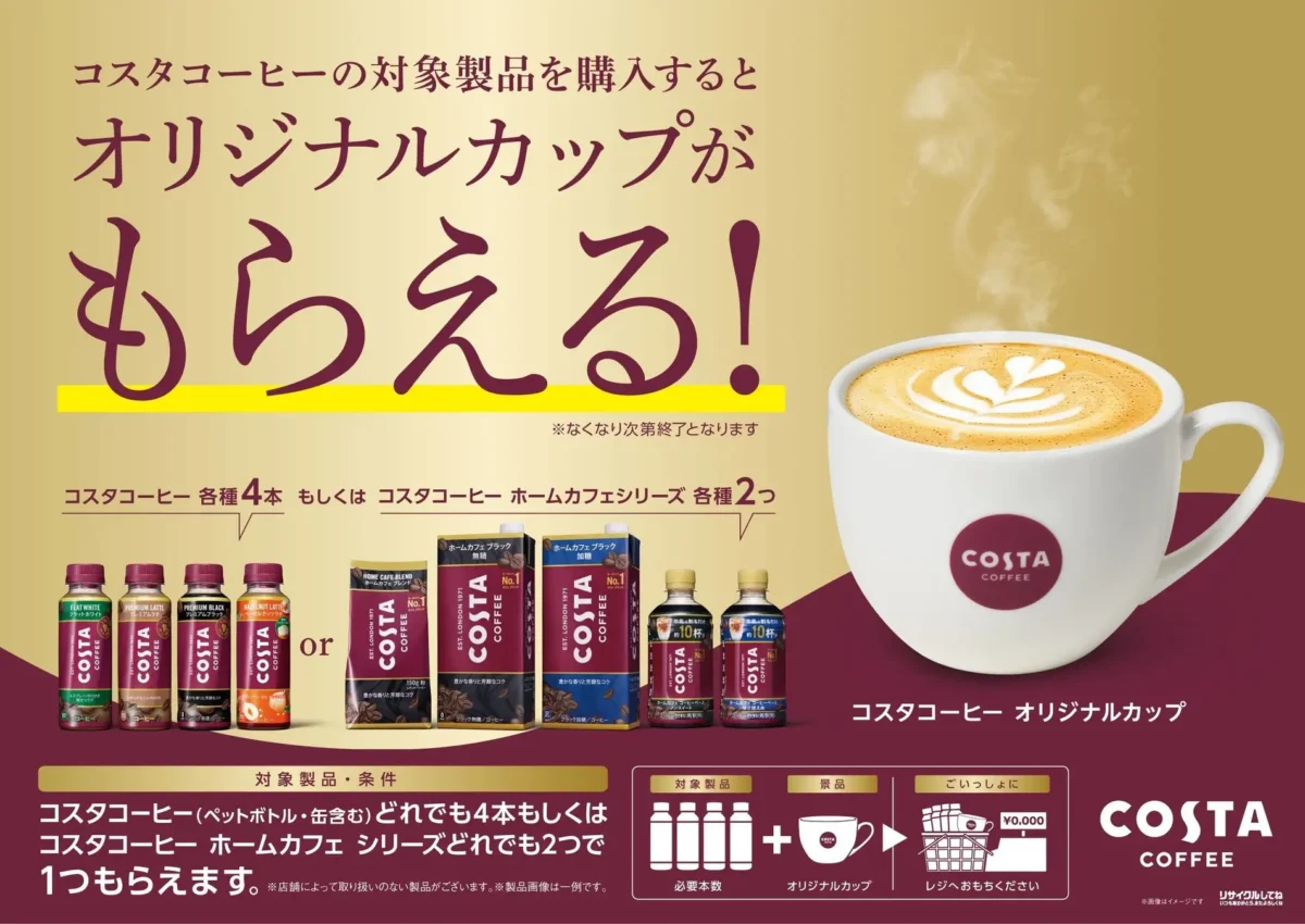 (1)対象製品購入で「コスタコーヒー オリジナルカップ」がもらえるプレゼントキャンペーン