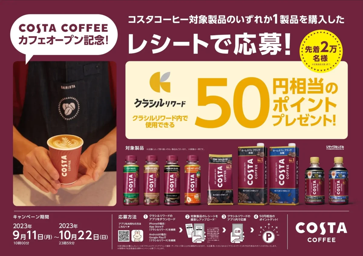 対象製品:全国のキャンペーン対象店舗で販売している「コスタコーヒー」全製品
