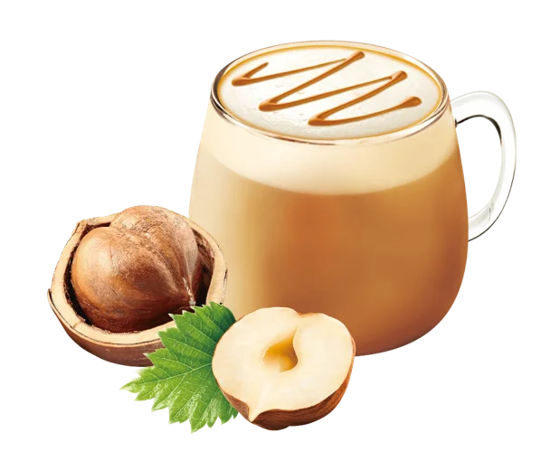 香ばしく、ほろ苦いコーヒーの味わいと相性が良い芳醇な味わいのヘーゼルナッツソースに仕上げました。ヘーゼルナッツの甘さや香ばしさを引き立たせるために、隠し味としてバニラ香料を加えています。
