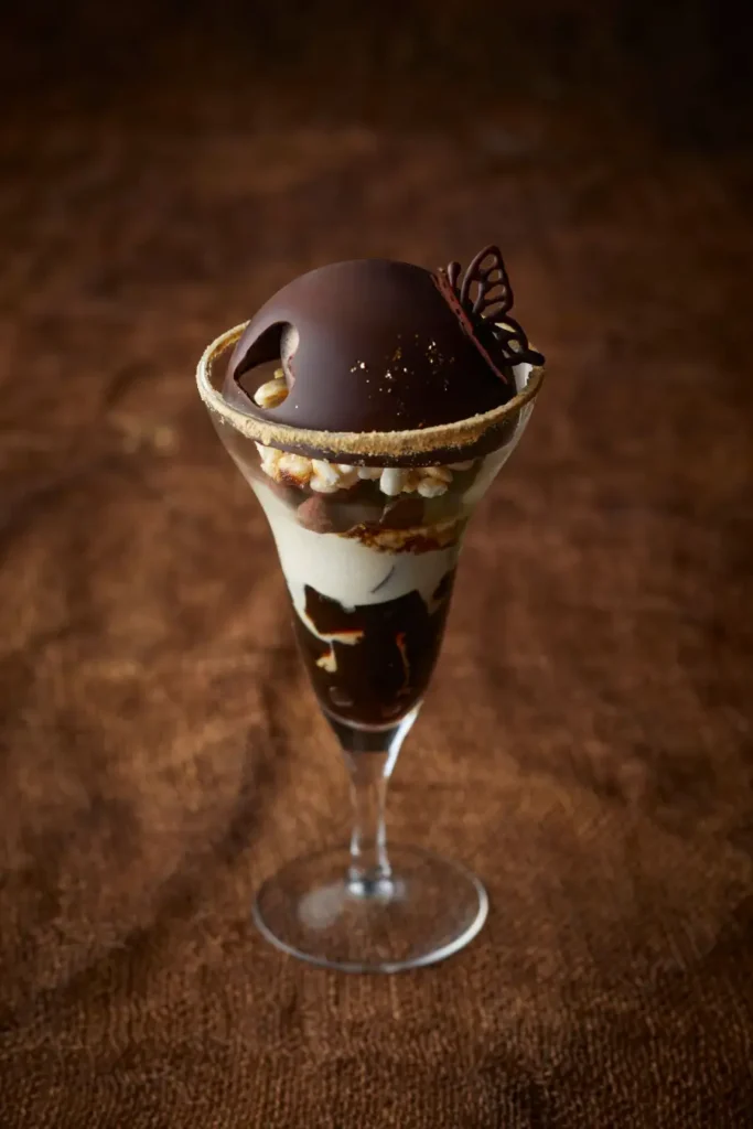 ドームを飾るのは、縁起の良い“蝶々”をモチーフにしたチョコレート。ホテルニューオータニ博多のペストリーが贈る、心温まる“ハートフル”な一品をご堪能ください。
