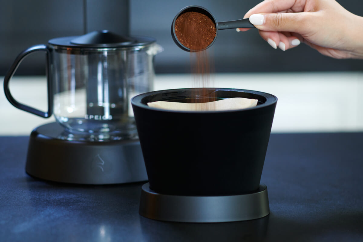 *コーヒー粉の粒度の均⼀性や使⽤後のお⼿⼊れ、コーヒーメーカーのサイズ感、粉砕する際の⾳の⼤きさなど、さまざまな使⽤シーンを考慮。EPEIOSでは「美味しい⼀杯」を抽出することに注⼒して、敢えてコーヒーミル機能を取り外しました。