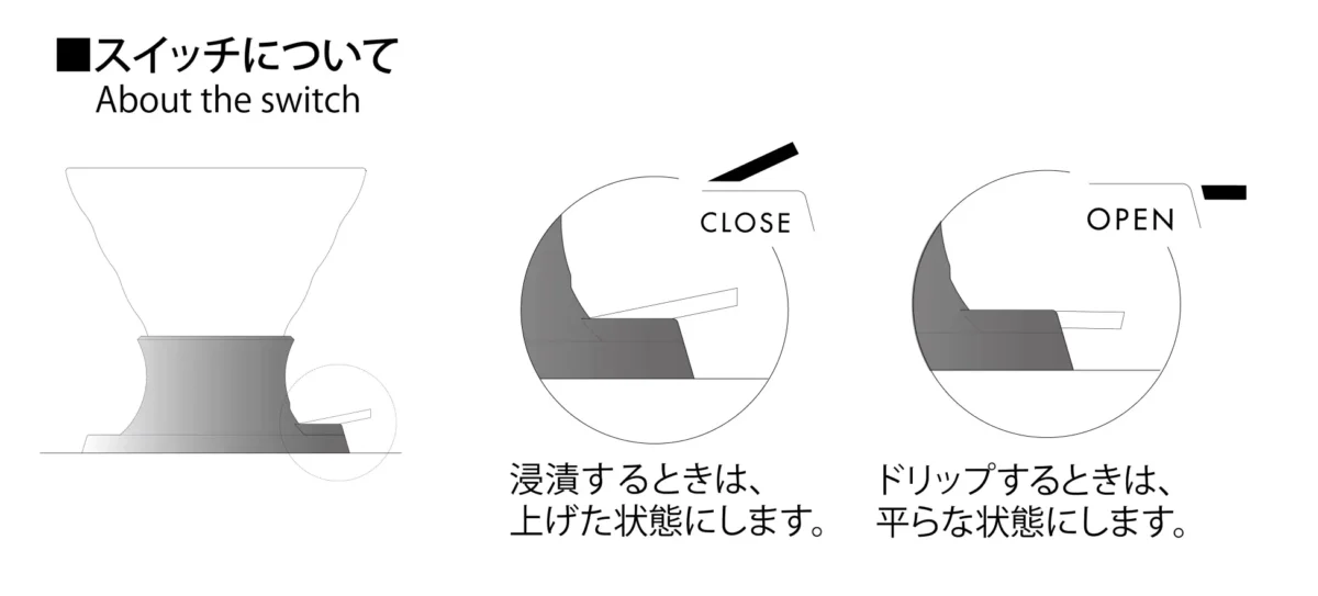 製品名の「スイッチ」は、スイッチを上下することにより、お湯を溜めたり、透過させたりしてコーヒーが淹れられるドリッパーの仕組みから名付けました。