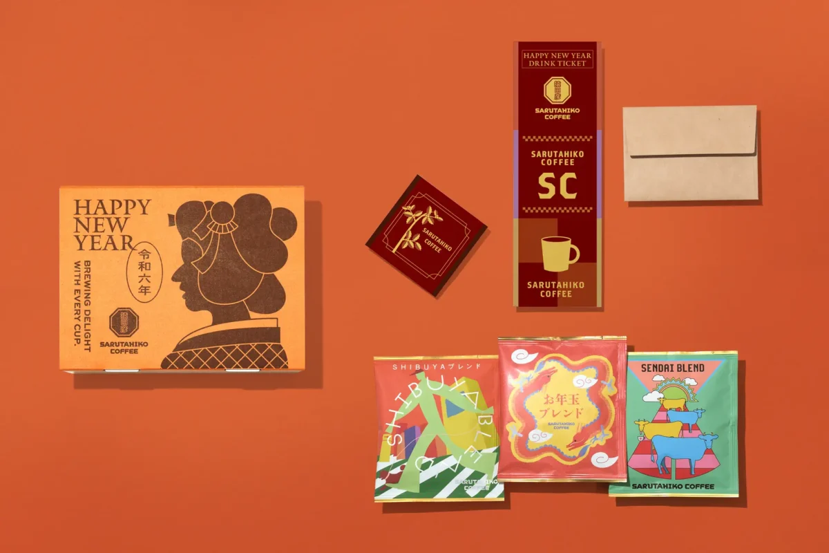 2024年の猿田彦珈琲の福袋は、全国の店舗限定ブレンドなど様々なドリップバッグが詰まったセットなど、お客様ご自身のスタイルに合わせてお楽しみいただける、全4種類のラインナップとなります。パッケージを包むバンダナやセラミックカップ、カレンダーなどのオリジナルグッズは、今年限定のデザインで登場します。また、動画とともにお楽しみいただける、最高級豆が詰まったコーヒーボックスセットもご用意いたしました。