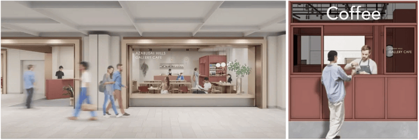 「麻布台ヒルズギャラリーカフェ」では、「麻布台ヒルズギャラリー」の展覧会やイベントに合わせたコラボレーションメニューの提供やポップアップショップを展開し、アートの鑑賞前後にゆっくりと寛ぎながらお食事を堪能いただけます。神谷町駅に直結するカフェの店頭にはドリンクスタンドを併設し、通勤・通学途中などにテイクアウト可能なドリンクの販売も行います。コーヒーやハーブティーなど日常で楽しめるメニューを提供するほか、月額4,200円の【マイボトルプラン】、月額4,980円【スタンダードプラン】など、定額でコーヒーを楽しめるサブスクサービスもご用意します。