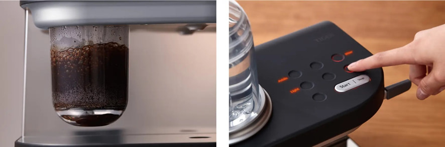 ⑩風味選択キー・濃さ選択キーで風味と濃さを選び「Start/Stop」キーを押す。または「Dual Temp」キーを押して「Start/Stop」キーを押す。