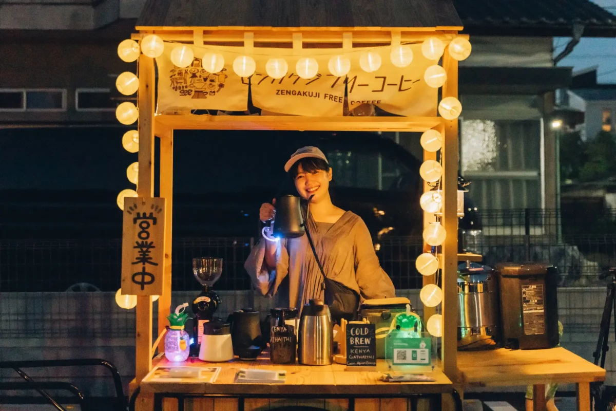 足立区古千谷本町にある「全學寺(ぜんがくじ)」の駐車場にて、週末にスペシャルティコーヒーを無料で淹れる“フリーコーヒー”のコミュニティです。「フリーコーヒーを通じて、素敵な人たちがなめらかに繋がる世界」を目指して、「全學寺」の副住職で「ゼンガクジ フリー コーヒー」代表の大島俊映と、大島の妻でバリスタの睦美が運営しています。