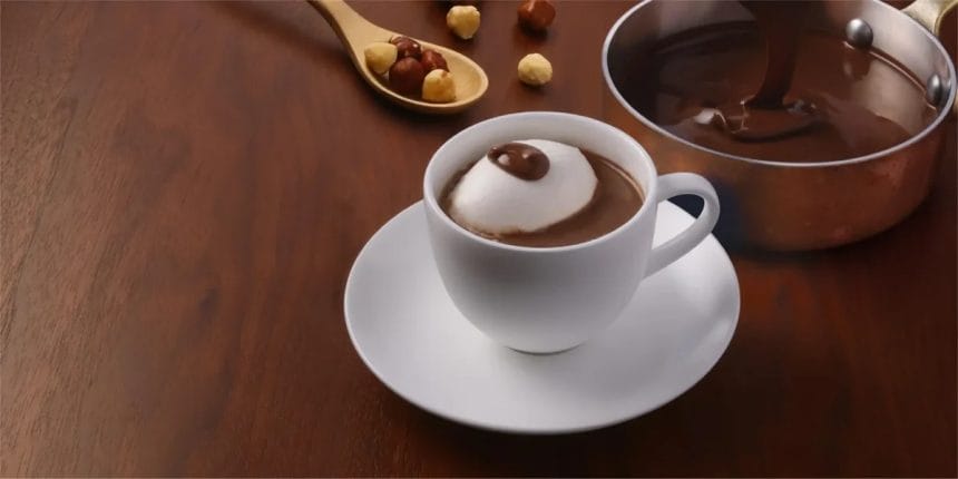 特長:2017年12月に発売した『ジャンドゥーヤミルク珈琲』が、今回リニューアルして期間限定で復活します。上島珈琲店の『ジャンドゥーヤミルク珈琲』は、チョコレートとヘーゼルナッツペーストを合わせた「ジャンドゥーヤ」と、ダブルネルドリップ方式で抽出したダブルネルドリップコーヒーとミルクを合わせたミルク珈琲を合わせ、甘みには和三蜜糖を使用しています。ジャンドゥーヤとは、ペースト状にしたナッツにチョコレートを加えたものですが、今回、メニューのために独自で開発した「ジャンドゥーヤ」には、ヘーゼルナッツの香りを引き立たせるために、ヘーゼルナッツペーストを35%配合しています。トッピングには、ホイップクリームと「ジャンドゥーヤ」を添えました。ヘーゼルナッツの豊かな香りと濃厚な味わいが、寒い冬にぴったりな1杯です。