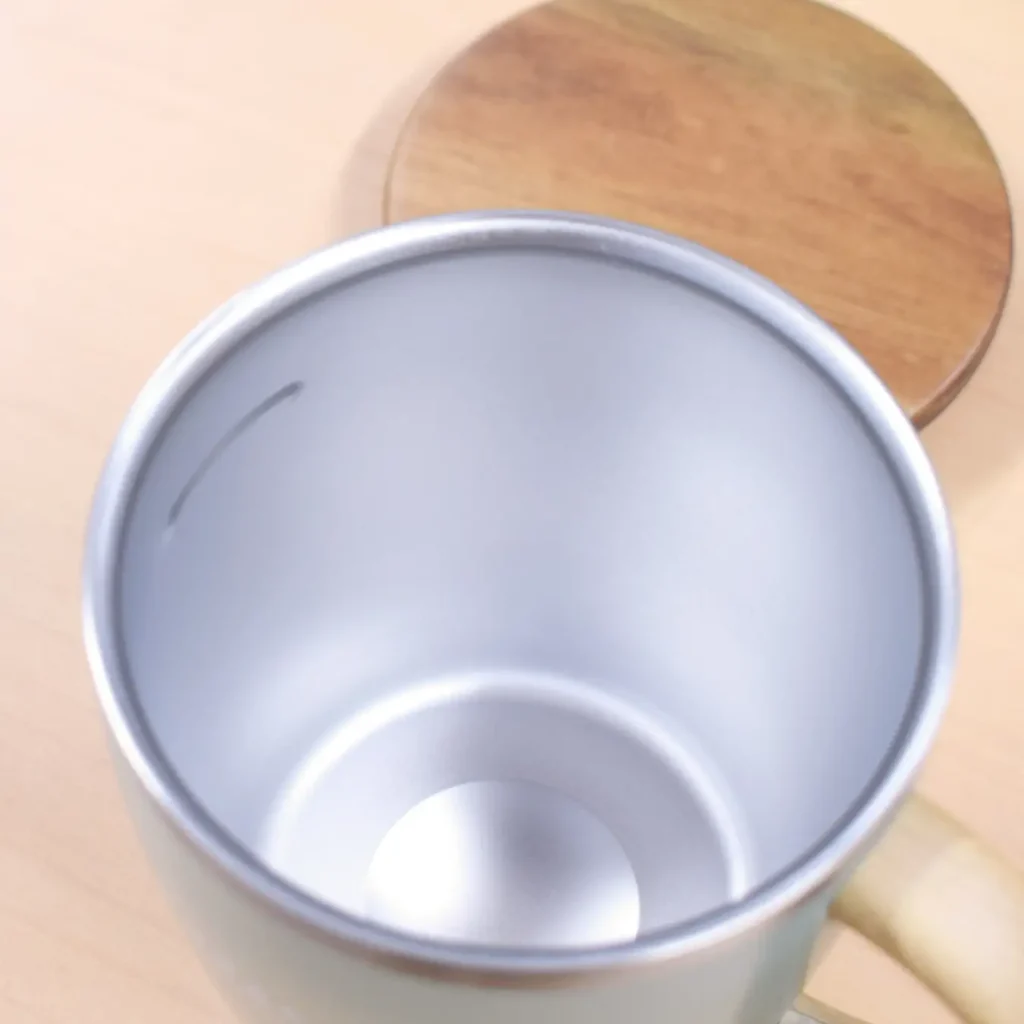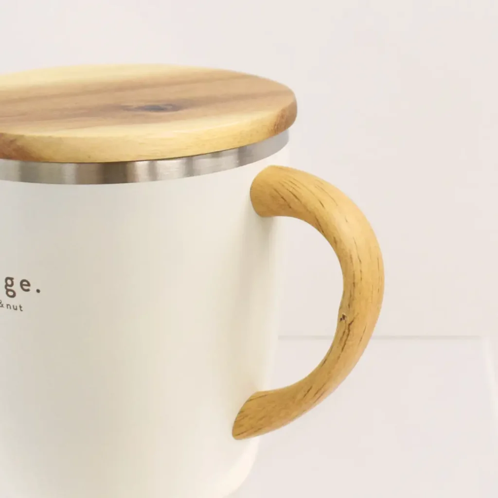 フタ付きなのでゴミやホコリからしっかりと飲み物を守ります。フタの素材はアカシアの木。ひとつひとつ違った風合いが楽しめます。