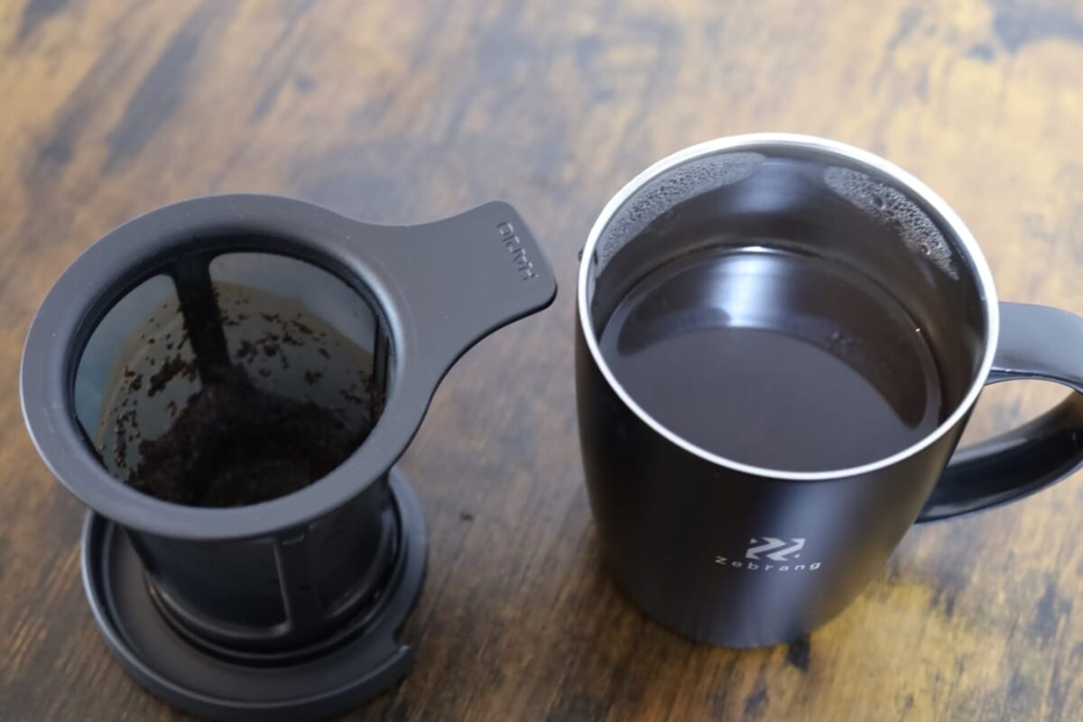 ストレーナーを取り外すことで、そのままマグカップとして淹れたてのコーヒーを飲むことができるそう。
