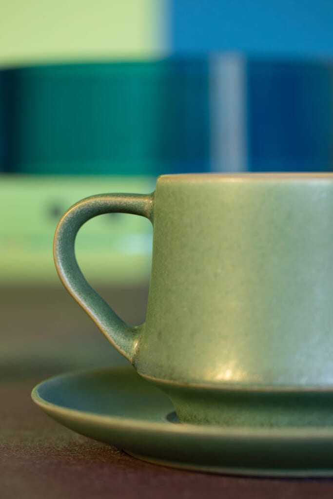 カラーは当時のストーンウェアのやわらかい土色と釉薬の色見を再現した3色展開で、カップ&ソーサーとマグカップの2形状のバリエーションをおたのしみいただけます。