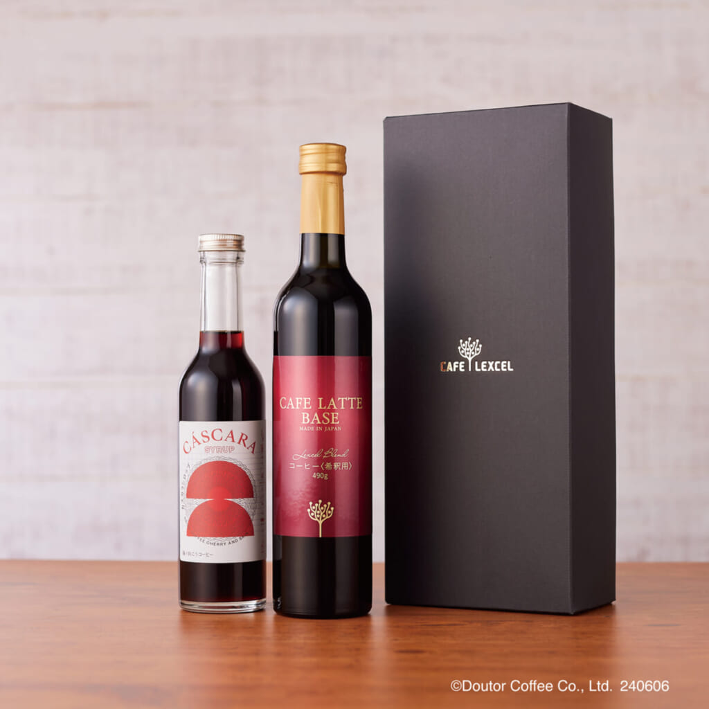 ドトール オンラインショップにて、6月6日(木)より「カフェ レクセル」のスペシャルティコーヒーを使用した希釈用のリキッドコーヒー「カフェラテベース ~Lexcel Blend~」とコーヒーの果実を乾燥させて作られた「カスカラシロップ」のギフトセットを発売!
