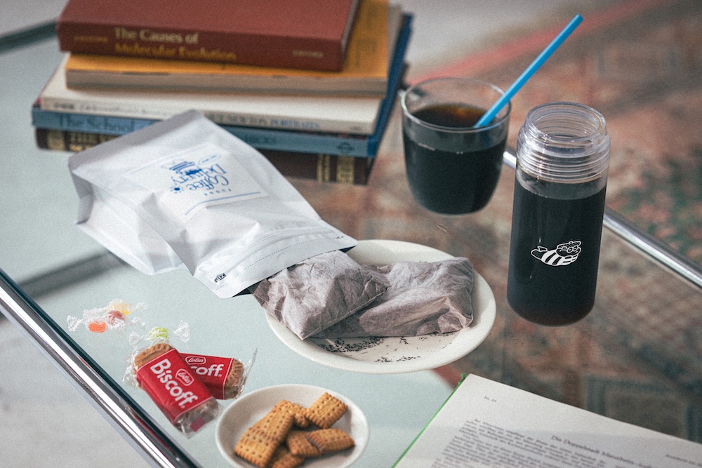 昨年実施した、第2回の「FUDGE コーヒー便」では、2023年は“本屋で働くパリジェンヌのコーヒー時間”をテーマに朝・昼・夜、3種類のオリジナルブレンドを製作。その中でも好評だった朝・昼のコーヒーを、それぞれディップスタイルコーヒーバッグ、水出しコーヒーバッグに!