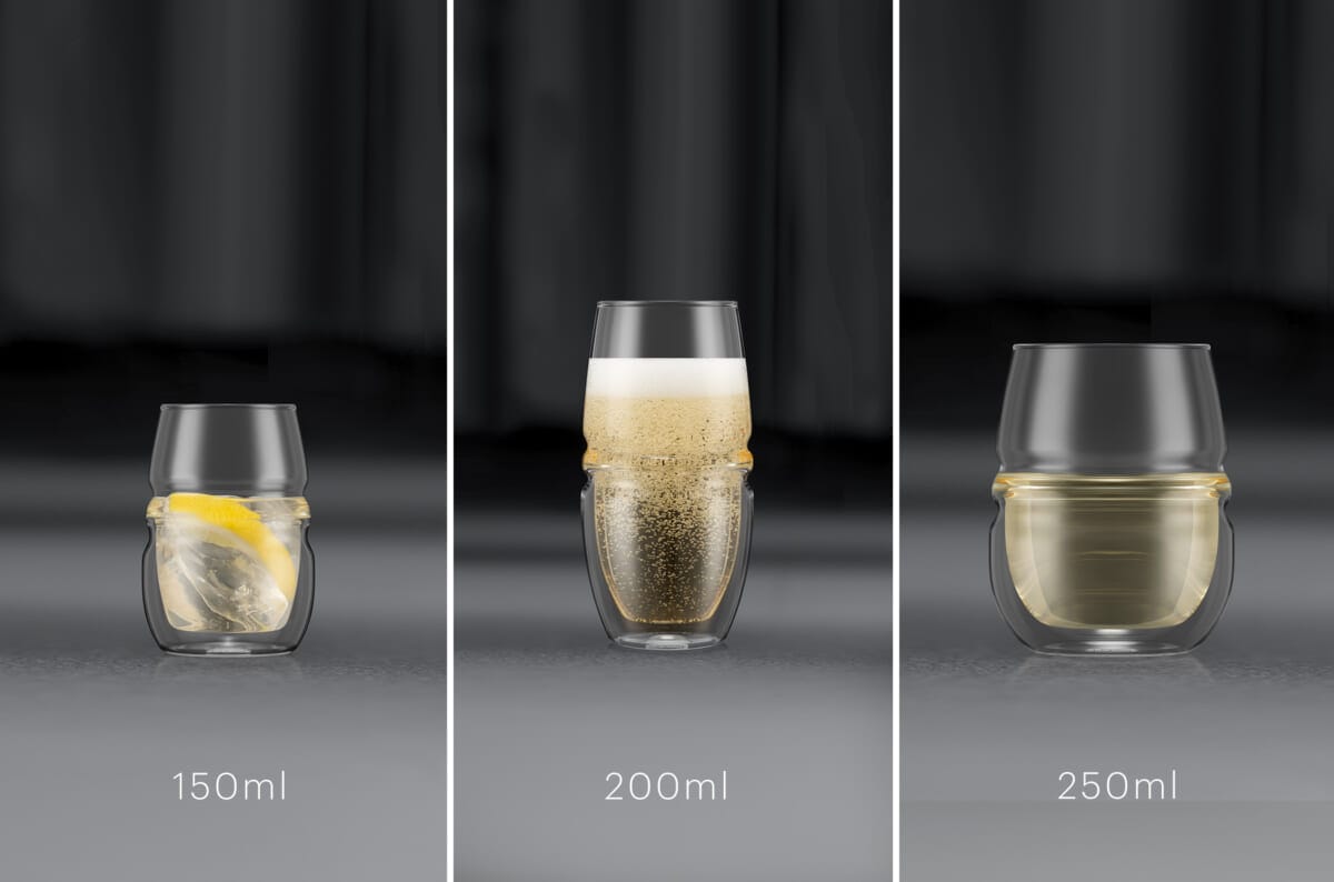 また、グラスの上半分をシングルウォールにし、飲み口を極限まで薄くすることで、グラスの厚みや存在を感じさせず、味わいや感触をストレートに感じることができ、飲みものの魅力をより引き出します!