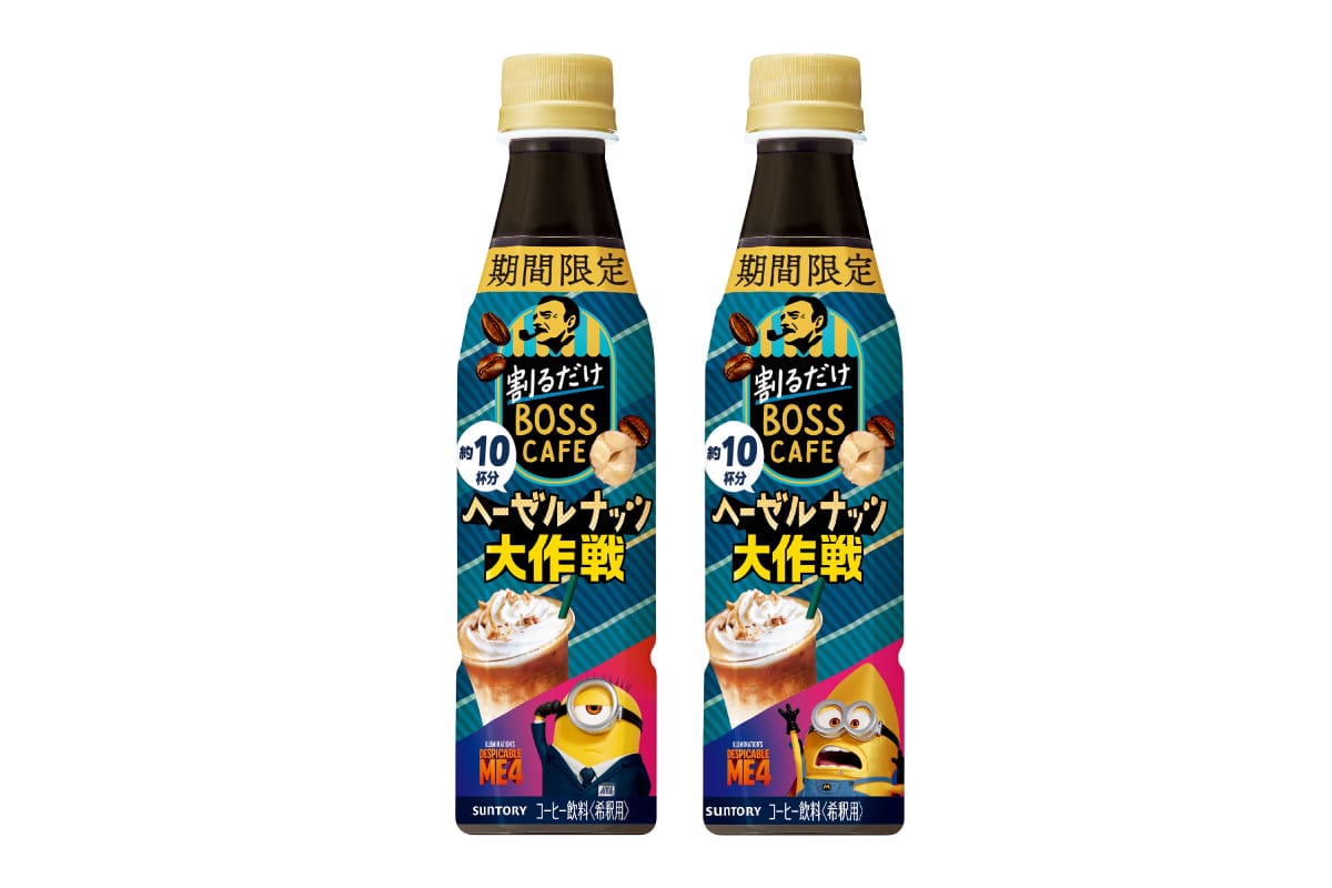 今回、カフェで人気のメニューである、へーゼルナッツラテをおうちで手軽に楽しめるよう「割るだけボスカフェ ヘーゼルナッツ大作戦」を発売します。パッケージでは表と裏で異なる「ミニオン」のパッケージです。