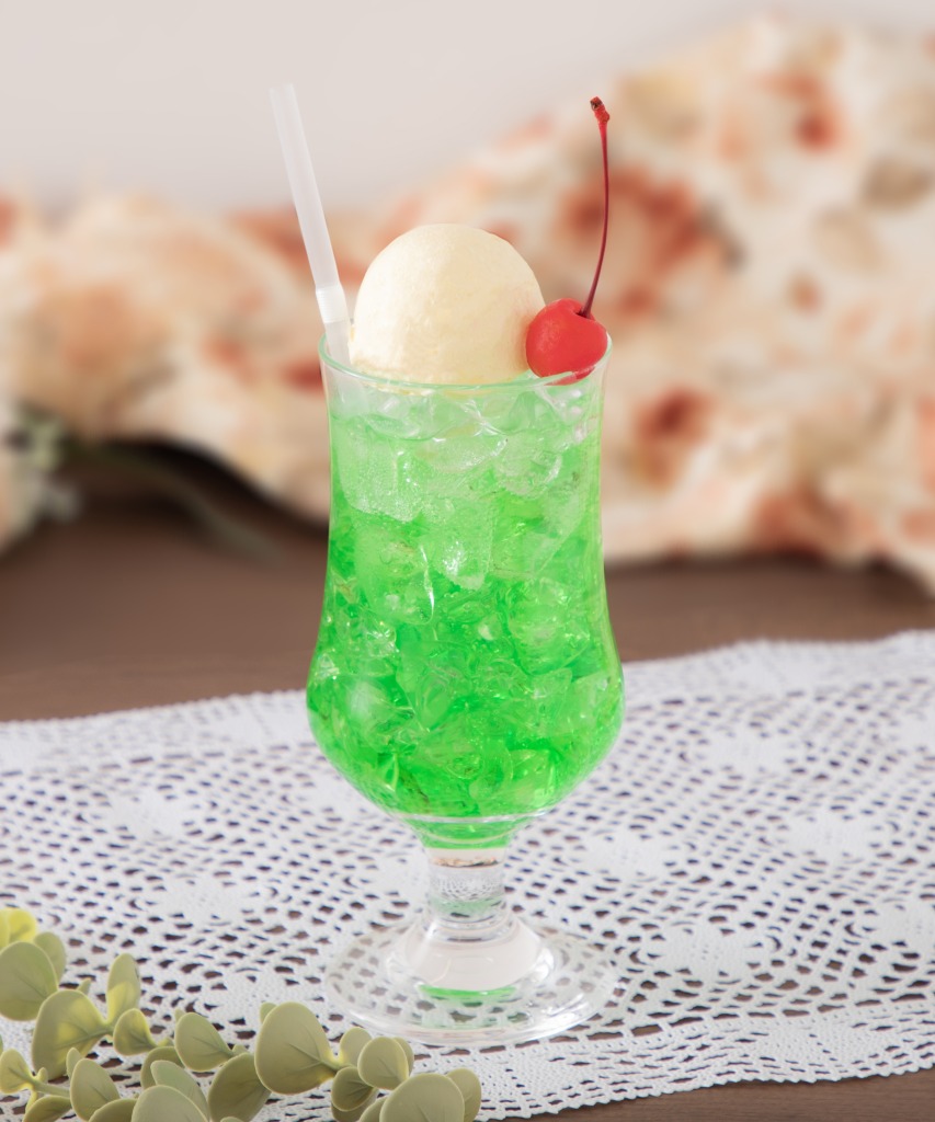 ブルーソルトアイスやコーヒーゼリーをトッピングしたパフェ。