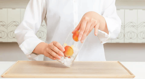 桃のような華やかな香りと自然な甘さが特長の完熟南高梅の非加熱シロップを使用。丸ごと1粒入った大粒の完熟南高梅の実を潰すと酸味が広がり、味の変化も楽しんでいただけます!
