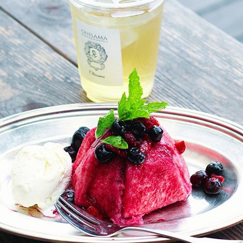 新感覚プディング!食パンは、こだわりの自家製パン酵母で作った生地を、薪を使った石窯で風味豊かに焼き上げています。贅沢にフルーツを包めば、サマープディングに。アイスクリームを添えて召し上がれ!