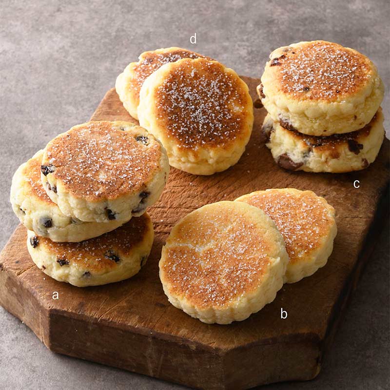 ウェルシュケーキ a.トラディショナル 378円 b.プレーン 346円 c.ミルクチョコレート 378円 d.ホワイトチョコレート 378円[c.d 各日 各300点限り](各1枚、ともに日本製)