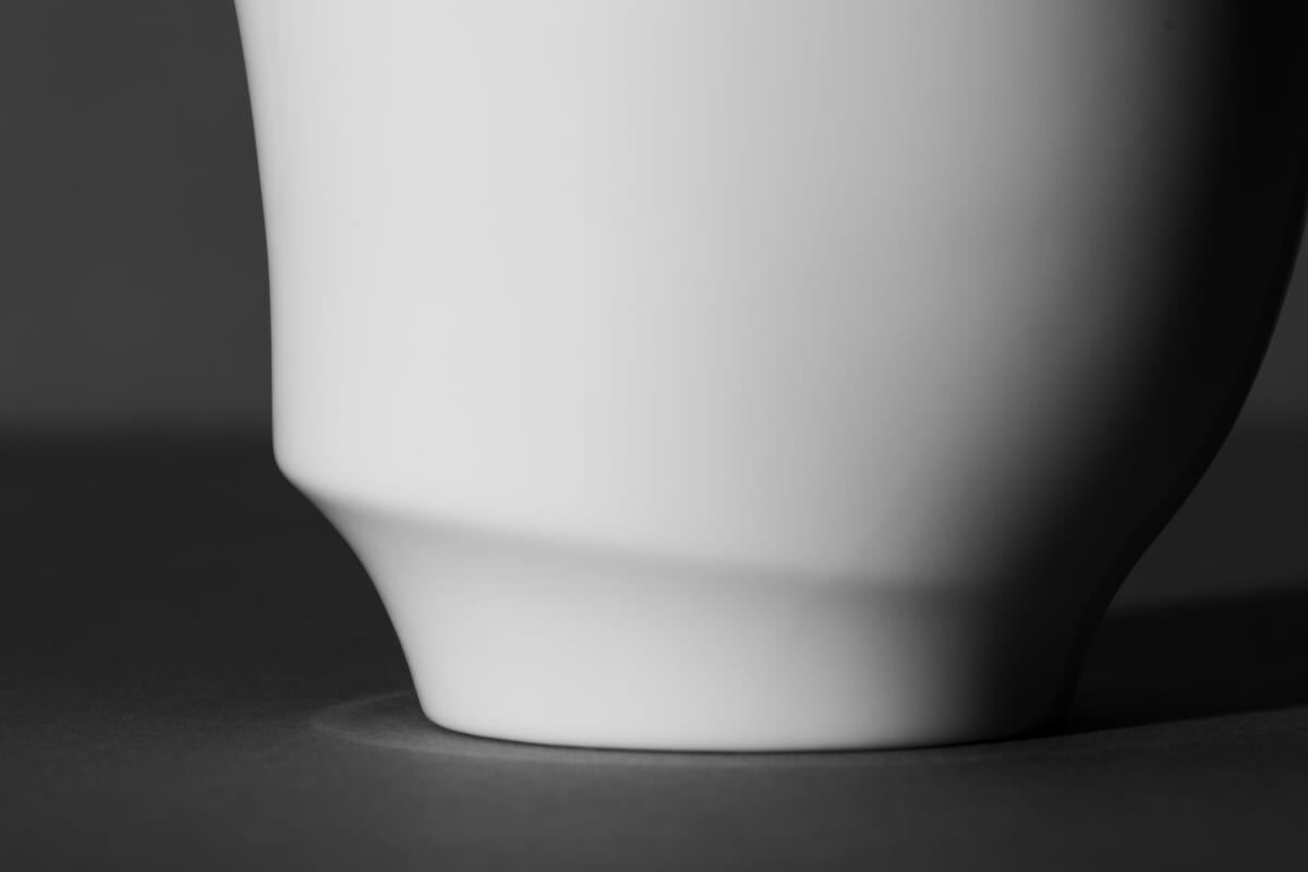 厚みの違う飲み口に合わせて、カップの外側デザインも自然なアシンメトリーにすることで、高台部分にも美しい左右差がうまれました。